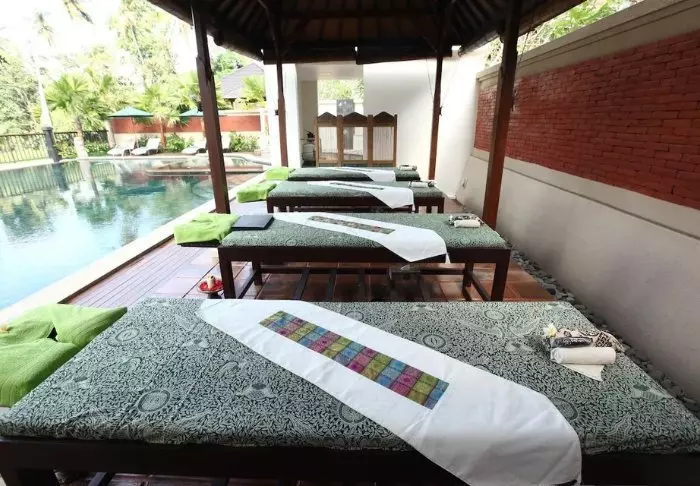 Hvis du vil unne deg litt ekstra, kan du kjøpe tradisjonelle balinesiske massasjebehandlinger på resortens eget spa.