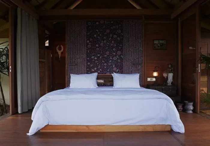 Du bor midt i hotellets frodige hage, mellom palmer og vakre tropiske blomster i en av de totalt 18 stråtekte bungalowene kalt «lumbung», som opprinnelig var en gammeldags rislåve. På bakkenivå har du et lite privat utendørsområde hvor du kan slappe av og sitte i skyggen. I andre etasje er det soverom med myggnett, aircondition, kjøleskap, gratis flaskevann, verdiboks, kaffe- og tefasiliteter og bad med hårføner. Det er også en liten balkong med bord og stoler.