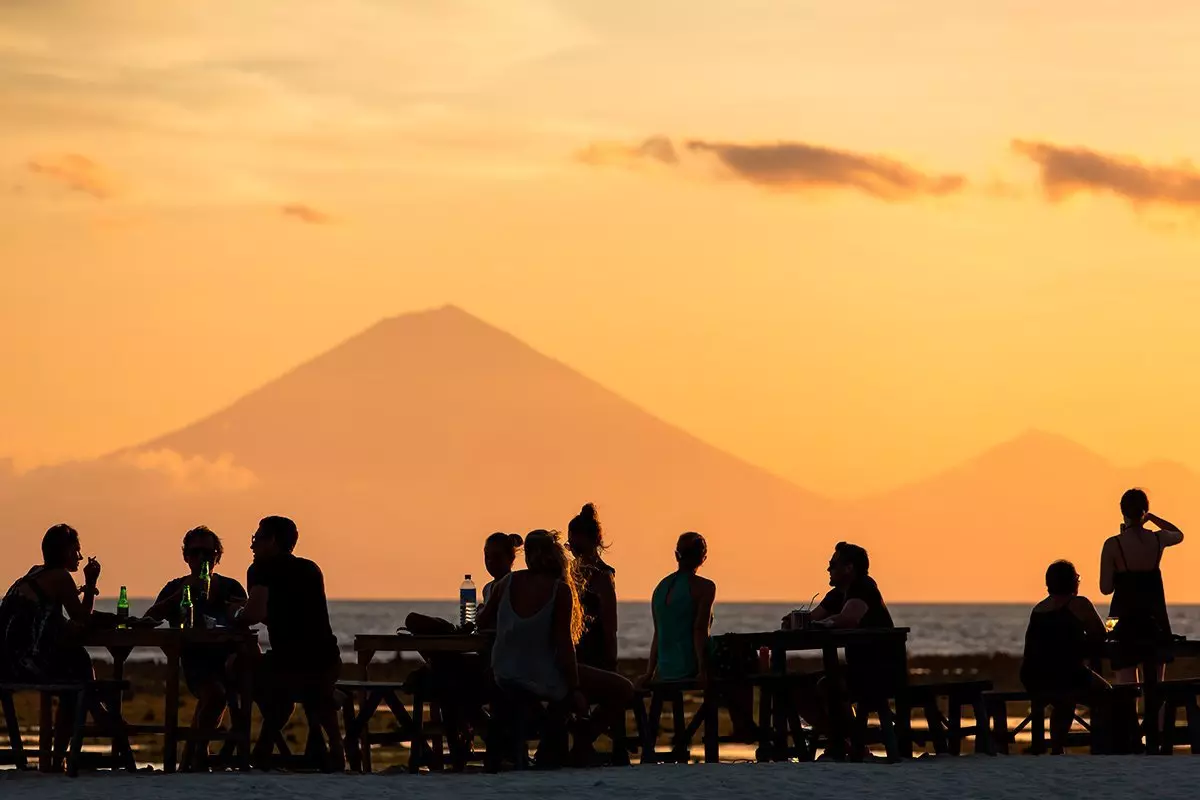 Om dagen er atmosfæren avslappet, og om kvelden er det god stemning og livsglede på de mange små restaurantene og barene. På vestsiden av øya kan du beundre de vakre solnedgangene over Bali, og hvis du er heldig og været er klart, vil du også kunne se solen gå ned bak vulkanen Mt. Agung.