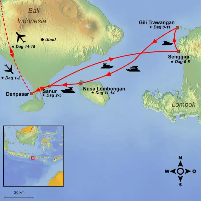 I dag venter den fjerde og siste øya på reisen, nemlig den lille paradisøya Nusa Lembongan, som ligger sørvest for Gili Trawangan og sørøst for Bali.