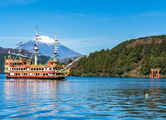 Når du er nede ved Togendai Station, går du ombord i en båt for å ta turen over den maleriske sjøen Ashi. Et vulkanutbrudd for 3000 år siden skapte det krateret som i dag er denne vakre kratersjøen. Fra båten kan du nyte den flotte utsikten over vannet og de omliggende fjellene som danner en flott ramme om sjøen.