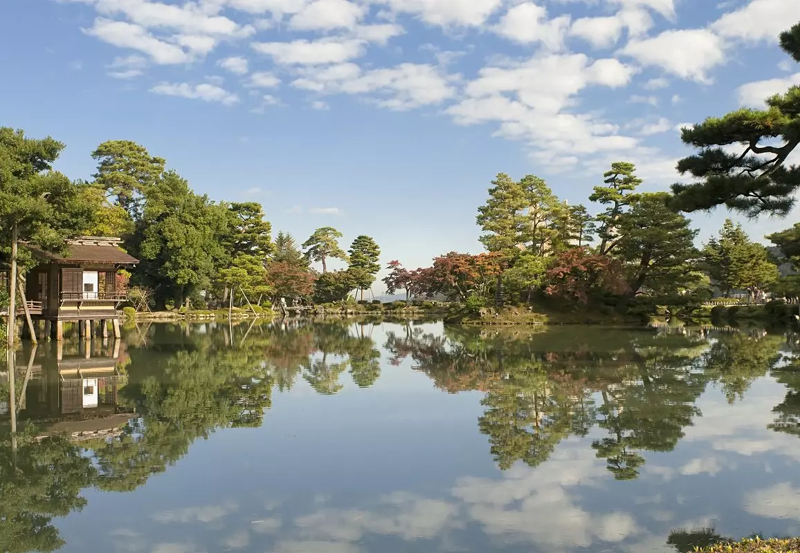 Deretter går du til den nesten 400 år gamle parken Kenrokuen, som anses for å være en av Japans tre vakreste parker. Derfor er den også meget populær. Navnet Kenrokuen henviser til den perfekte estetiske kombinasjonen av rikelig vann, god plass og avsondrethet, de tre elementene som må til for å skape en vakker japansk have.