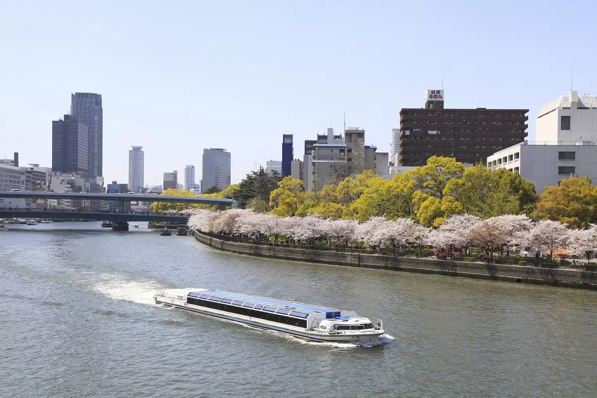 Fra Osaka-borgen er det en rask tur til fots til elven, og der går du ombord i Aqualiner-båten for en times sightseeingtur på Osakas vannveier.