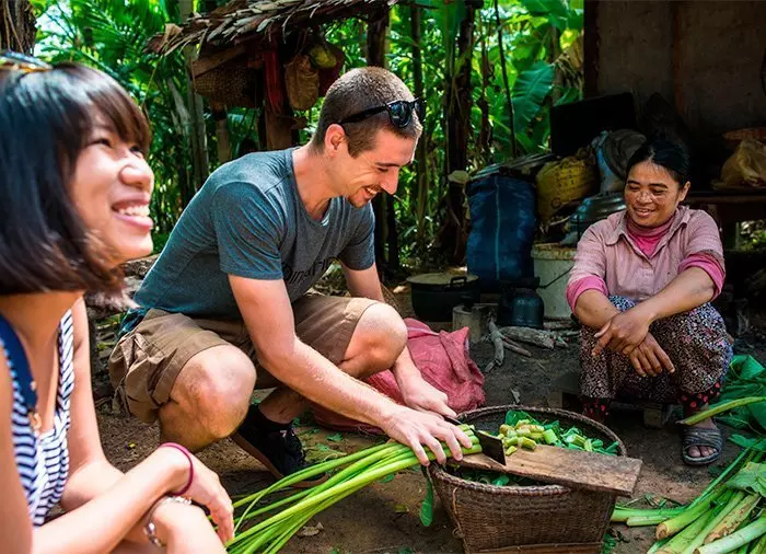 Du blir hentet på hotellet og starter med å oppleve den travle morgenen på det lokale markedet, som bugner av friske råvarer. Du fortsetter ut til det økologiske gårdsbruket, der du selv skal høste og samle inn noen av grønnsakene som skal brukes i dagens matlaging. En dyktig, lokal kokk veileder deg gjennom tilberedningen av spesialitetene, mens du hører om hvordan den kambodsjanske kulturen påvirker matkulturen.