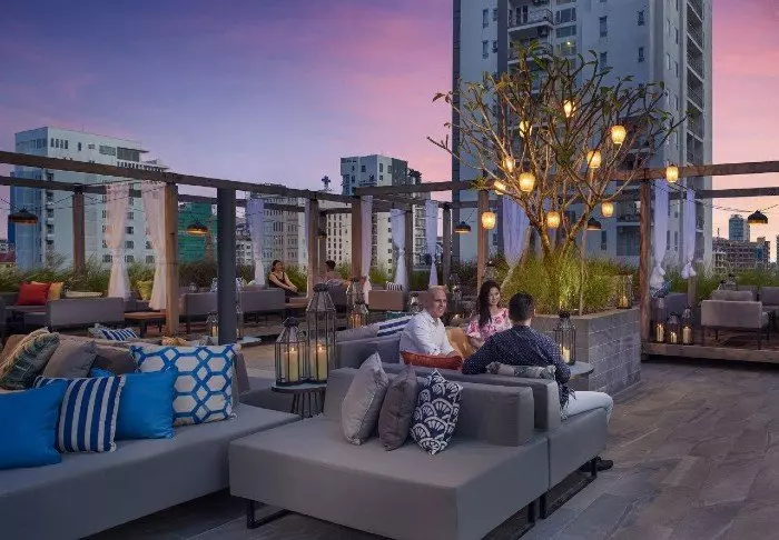 Når dagen går mot hell, kan du ta en tur innom hotellets hyggelige og stemningsfylte rooftop bar, ”Lantern Bar”. Baren har utsikt over byen. Som navnet antyder er det mange flotte lanterner og levende lys her. Kos deg med en cocktail eller et glass vin mens solen forsvinner bak høyhusene i Phnom Penh. Takterrassen lyses opp av lanternenes skjær mens musikken spiller diskret i bakgrunnen.