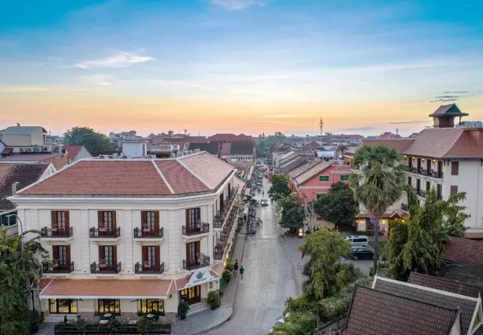 Det sjarmerende Steung Siemreap Hotel har en fantastisk beliggenhet i hjertet av Siem Reap. Hotellet ligger i gangavstand fra det gamle markedet Phsar Chas, Wat Preah Prom Rath-tempelet, den livlige pub-gaten og Siem Reap-elven.