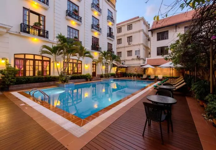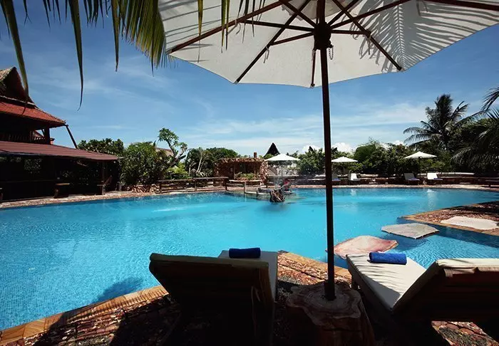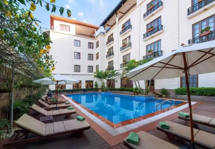 Steung Siemreap har dessuten et deilig bassengområde med palmer og tropiske trær, og både liggestoler og parasoller er tilgjengelige.