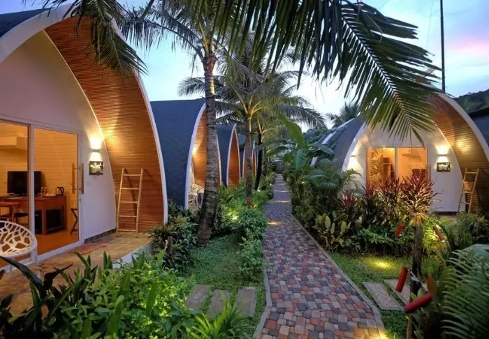 Hvert lille hus rommer 1–2 separate og romslige rom (min. 30 m2) med egen inngang. Rommene har en liten balkong eller terrasse og er innredet med skrivebord, takvifte, badekåpe, tøfler, myggnett og en bad- og toalettdel. Hårføner kan lånes i resepsjonen og det er gratis Wi-Fi.