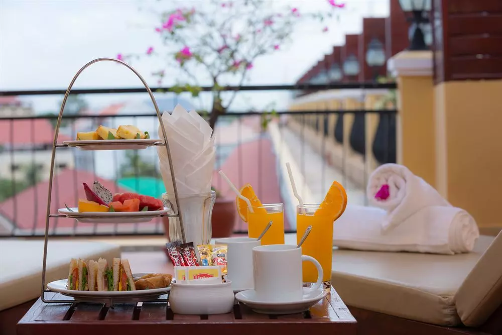 Ved siden av svømmebassenget finner du hotellets restaurant og bar. Restauranten tilbyr både buffet og à la carte-servering med retter fra både det internasjonale og kambodsjansje kjøkkenet. Baren serverer øl, vin, bobler og fargerike cocktails.