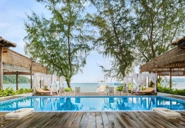 The Royal Sands er beliggende på Koh Rong, den største av de to Koh Rong-øyene. Her går alt opp i en høyere enhet i dette fantastiske barfotparadiset, som ligger rett på Koh Rongs beste strand Long Beach, også kalt Sok San Beach. Luksusresortet åpnet dørene i 2018 og er gjennomført og smakfullt innredet med en avslappende atmosfære.