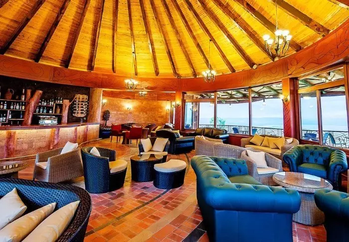Hovedbygningen har en imponerende lounge samt bar og restaurant. På kjølige kveldes tennes det opp i peisen innendørs – på varme kvelder kan du nyte drinken din på den store utendørs terrassen.