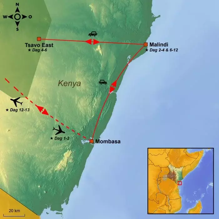 Etter et par dager ved kysten venter en safaritur til vakre Tsavo East nasjonalpark. Her bor du to netter i en flott safaricamp like utenfor nasjonalparken og drar på game drives inne i parken. Alle måltider og safariturene er inkludert i turen.
