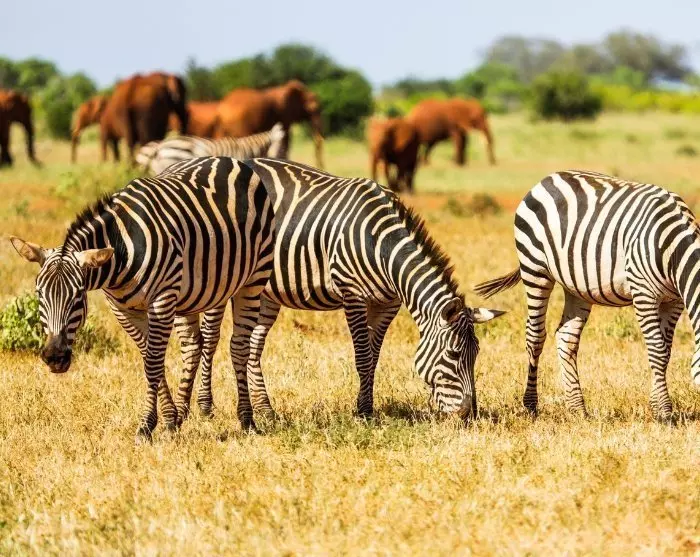 Landskapet i Tsavo East er flatt, slik at det er enkelt å se dyrene.