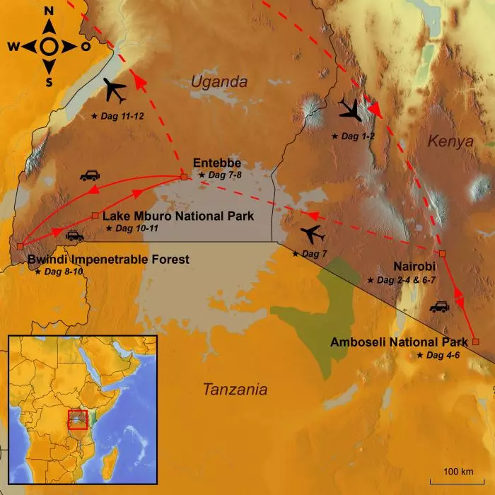 Fra Kenyas pulserende hovedstad, Nairobi til safari i Amboseli nasjonalpark med utsikt til Kilimanjaro. Fortsett til Uganda, hvor du drar på vandretur i regnskogen på jakt etter fjellgorillaer.