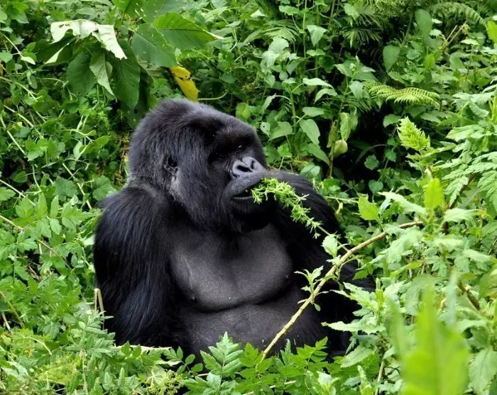 Fra rangernes hovedkvarter vandrer du av sted i selskap med guider gjennom tette ranker av klatreplanter og underskog for å finne gorillaene. Det sterkt skogkledde landskapet er utrolig tett, men brytes opp av mange dyrestier som letter adgangen. Husk å nyte fotturen gjennom skogen og hold utkikk etter andre dyr og fugler.