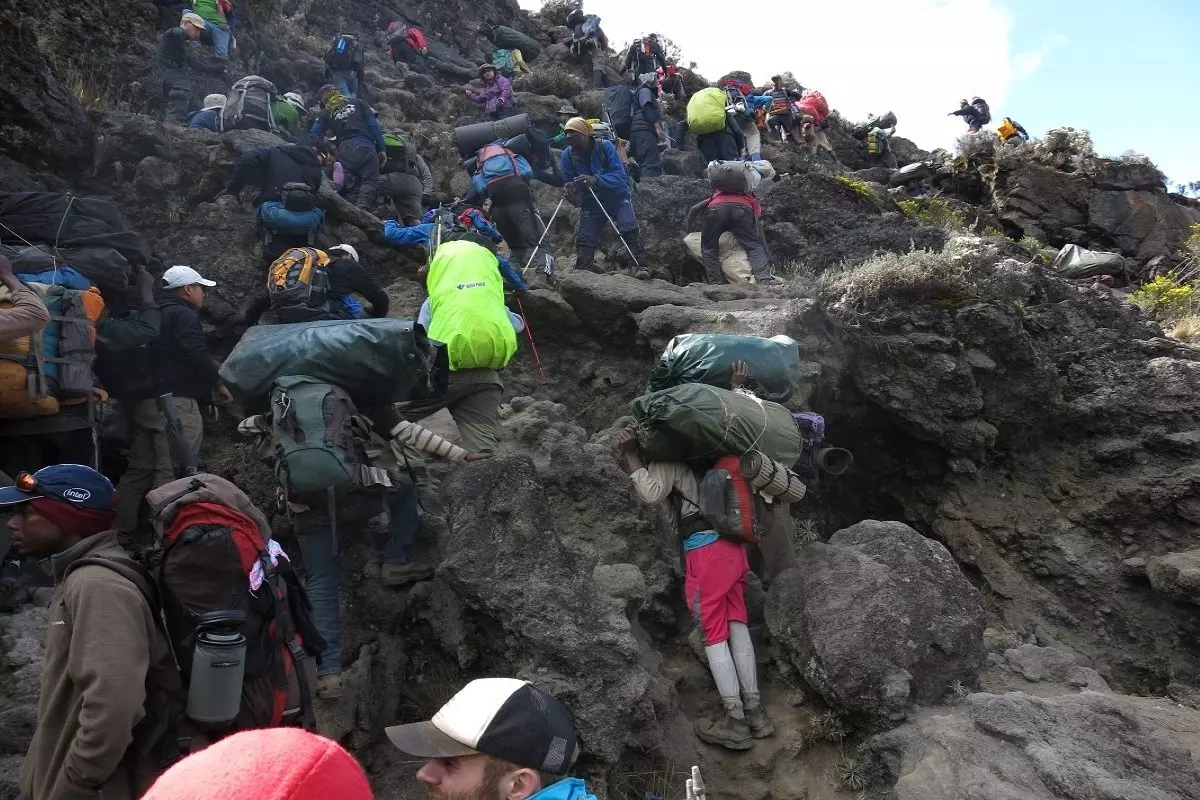 Etter en natt under den imponerende Great Barranco Wall og en solid frokost klatrer du opp den beryktede klippeveggen – noe som heldigvis er lettere enn det ser ut til. På toppen, like under Heim-breen, som henger som kjempestore gardiner av is utover massivet, folder Kilimanjaros skjønnhet seg ut på fantastisk vis.