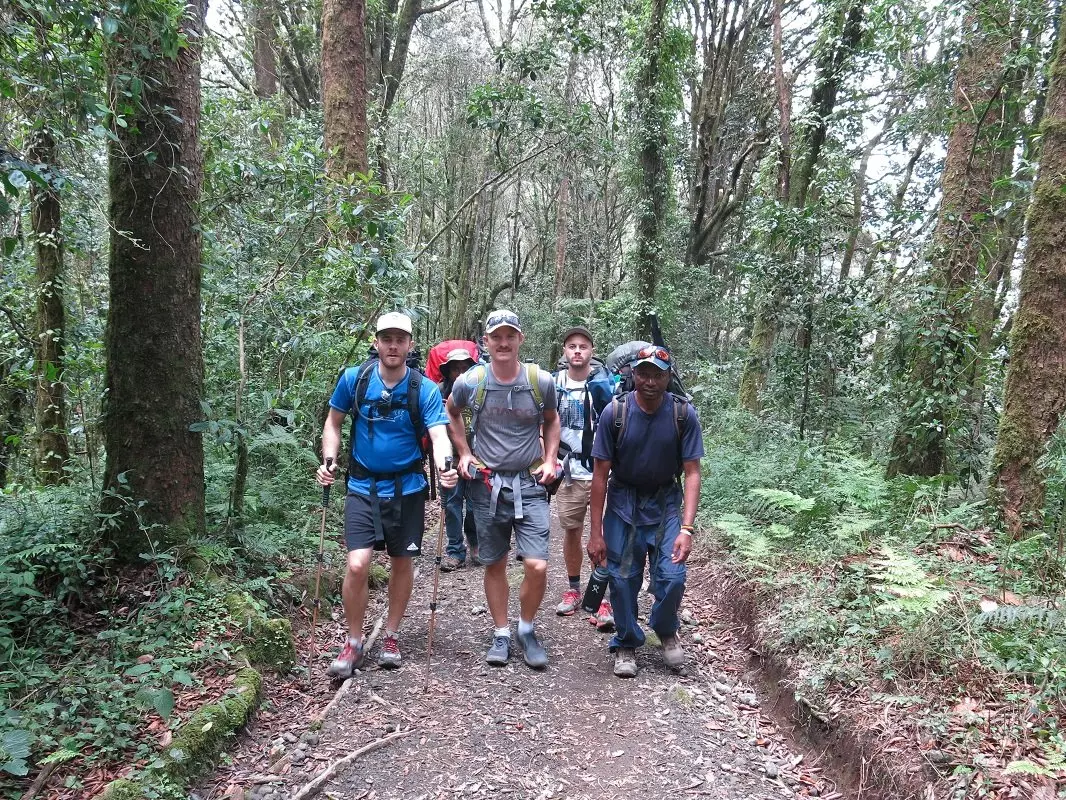 På den første delen av ruten i lavlandet kan det være vått og sølete. Du vandrer på vakre stier gjennom den tette regnskogen, der du kanskje er heldig og får et glimt av dyrelivet, for eksempel de interessante og meget sjeldne svarte og hvite colobusapene. Bærerne går i forveien, så teltet ditt står klart når du ankommer Machame Camp.