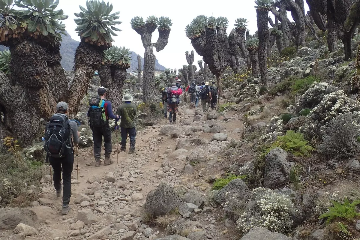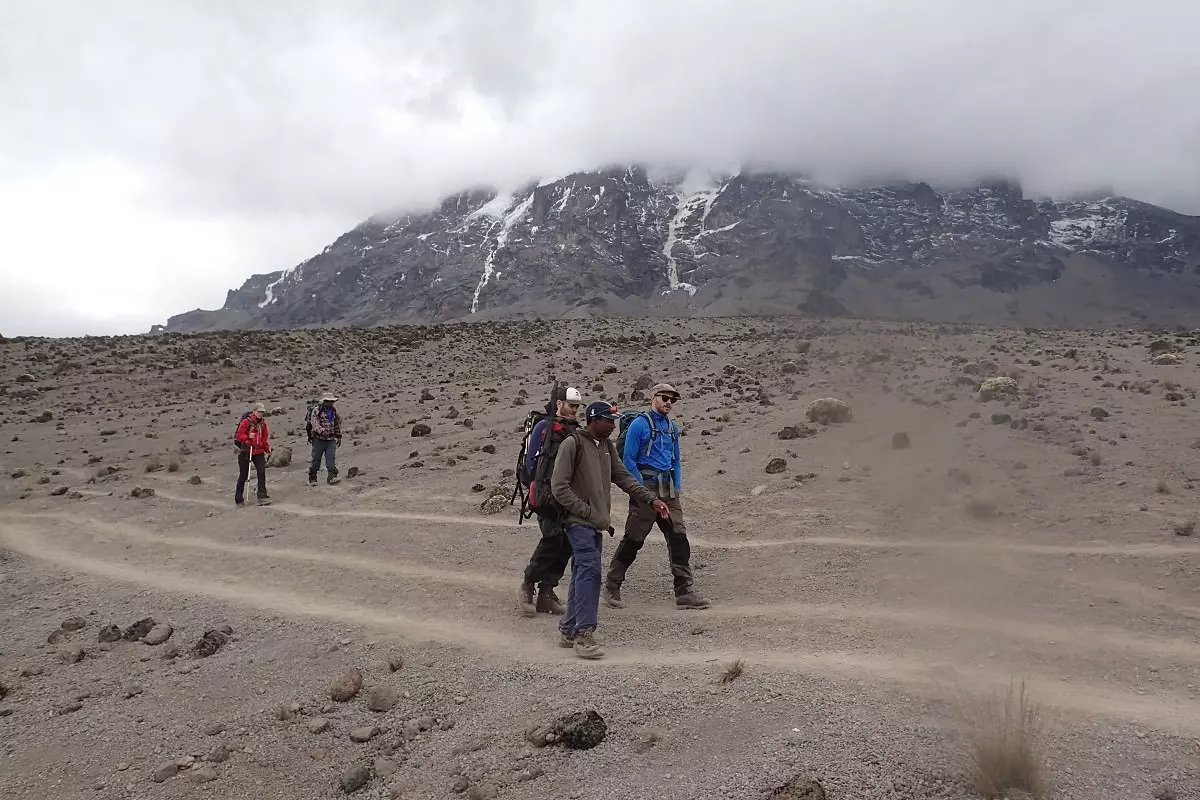 Deretter starter nedstigningen til Barafu Camp, en tur på ca. 3 timer. Her får du en kort og velfortjent hvil før du vandrer videre nedover den steinete stien til Mweka Camp, der det venter en velfortjent god natts søvn. Leiren ligger i den øverste delen av skogen, der det ofte er tåke og regn sent på ettermiddagen. Høydepunktet er nok at du her får både varmt vann og varm mat.