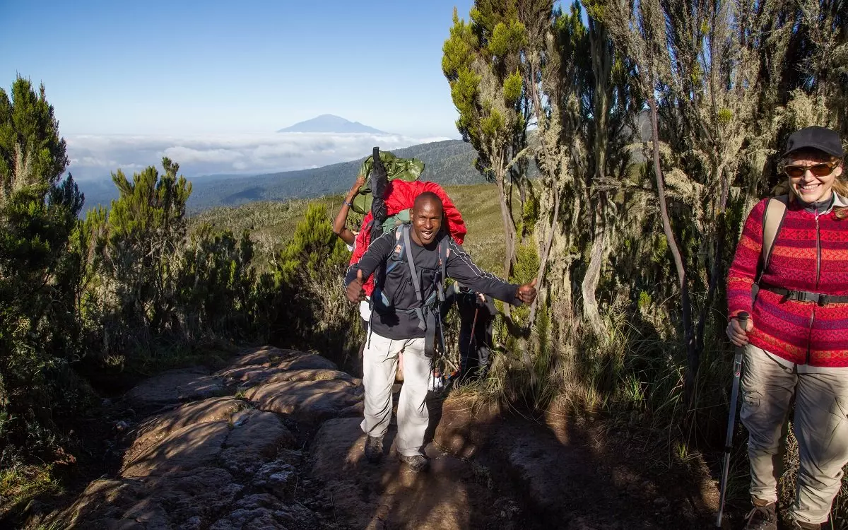 Marangu er også kjent som Coco Cola-ruten. Den starter ved Marangu Gate, som er den sørøstlige inngangen til Kilimanjaro nasjonalpark. Du vandrer langs vakre stier gjennom skog og regnskog. Landskapet åpner seg og blir til heilandskap og de gigantiske senecios-plantene kommer til syne. Underveis kan du beundre utsikten til Kibo og Mawenzis takkede bjergtinder. Vi har lagt inn en akklimatiseringsdag, slik at du bedre kan venne deg til høydene, og her kan du evt. bruke dagen på å vandre til Maweni Tarn Hut eller Zebra Rocks. Heilandskapet blir langsomt avløst av det alpine ørkenlandskapet som forbinder Mawenzi og Kibo. Du vandrer forbi Gilman’s Point, der du kan nyte utsikten før oppstigningen til toppen, som foregår fra øst. Nedstigningen følger den sørøstlige siden, der du har utsyn til Kilimanjaro fra de mange utsiktspunktene.