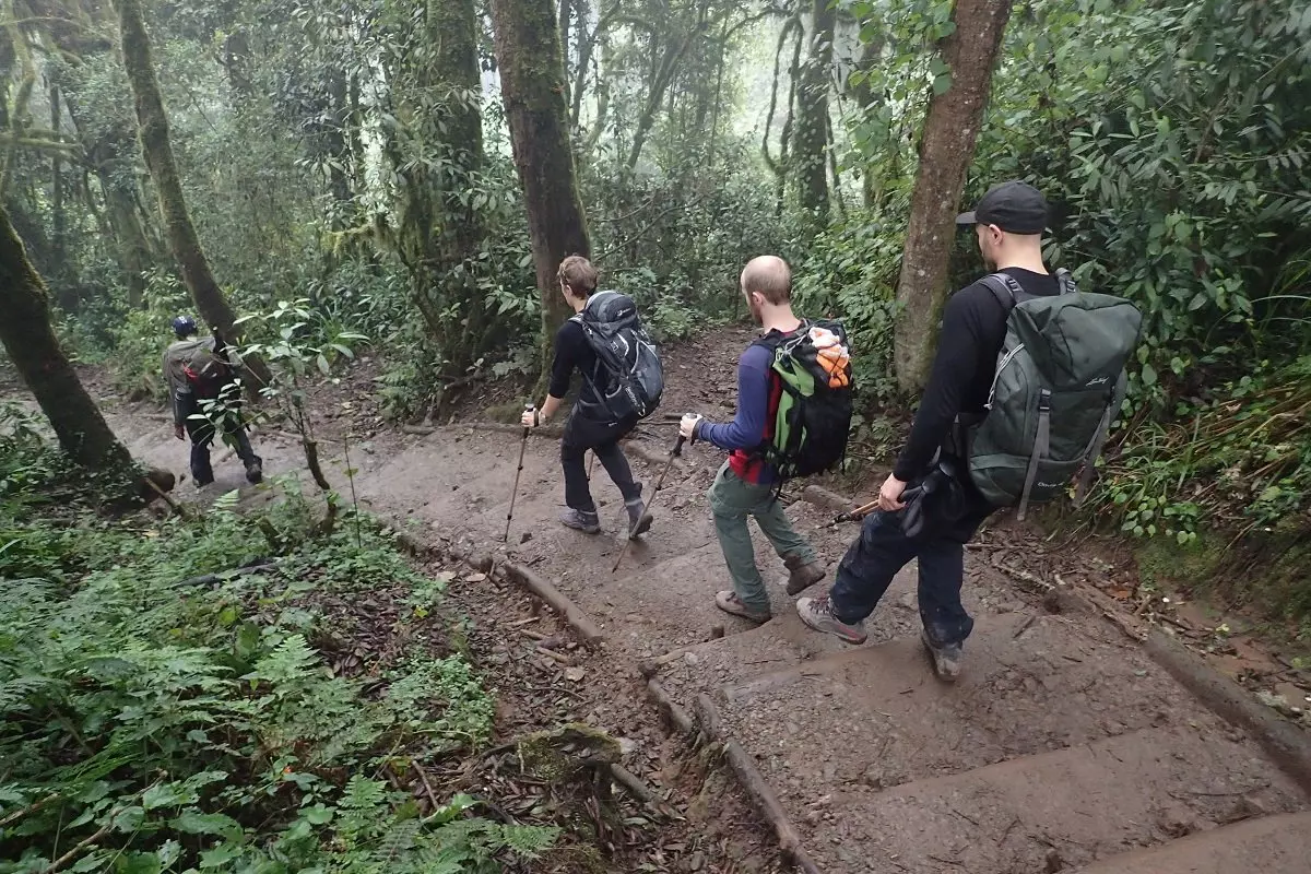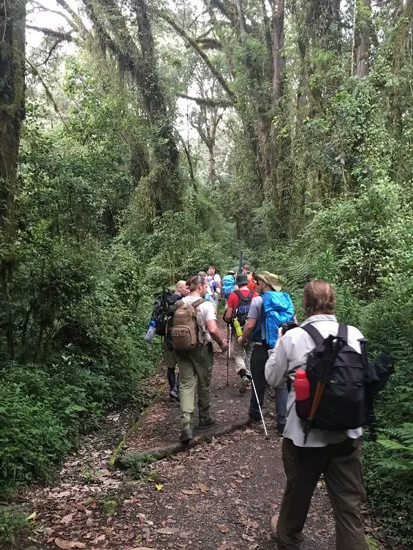 Etter frokost forlater du Moshi og kjører til Marangu Gate, som er den sørøstlige inngangen til Kilimanjaro nasjonallpark – en kjøretur på 45 min. Ved ankomst til Marangu Gate er det innsjekking og registrering, og det er også her du møter ditt team av guider, kokker og bærere. Herfra starter bestigningen til toppen av Kilimanjaro. Du vandrer langs vakre stier gjennom skog og regnskog med eukalyptustrær og forskjellige fuglearter, og kanskje er du også heldig nok til å få et glimt av de svarte og hvite colobus-apene. I disse lave høydene kan det være vått og sølete, så det er viktig å ha utstyret i orden – spesielt fottøyet. Ved ankomst til Mandara Hut kan du bare slappe av. Hvis du føler deg i form til det, kan du sammen med guiden og andre vandre en tur til Maundy Crater og utforske omgivelsene mens kokkene tilbereder kveldsmaten.