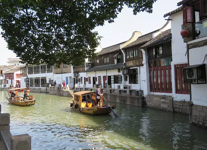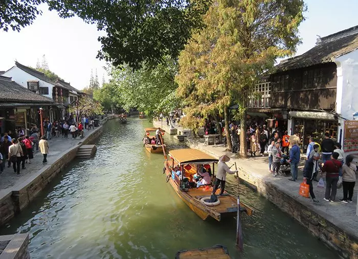 Du blir hentet på hotellet av en sjåfør og guide. Sammen kjører dere til den gamle kanalbyen Zhujiajiao, som har en mer enn 1700 år lang historie. Zhujiajiao ligger mellom Suzhou og Shanghai i et område med mange sjøer og vannårer. Byen er gjennomskåret av kanaler som i gamle dager brakte byen velstand med tekstilproduksjon og risdyrking. Kanalene brukes fremdeles som ferdselsårer, og byen kalles derfor Kinas Venezia.
