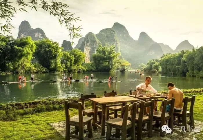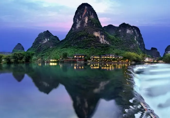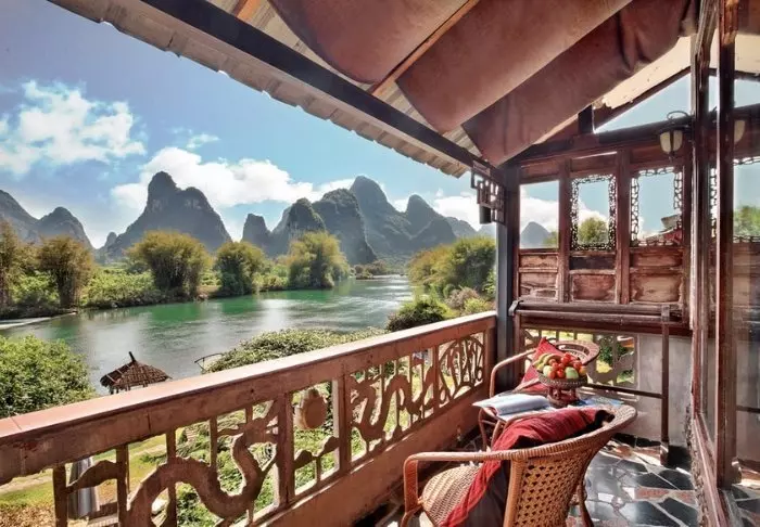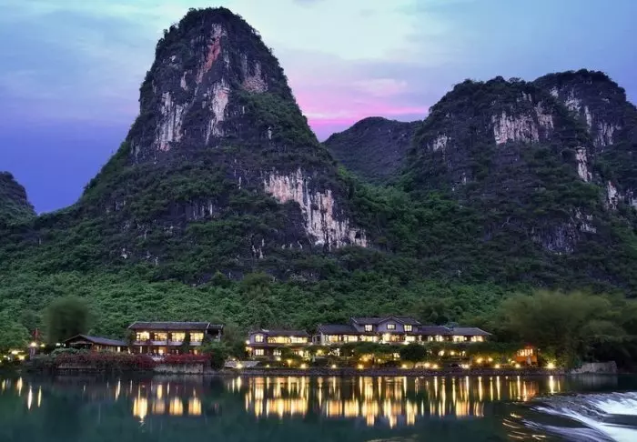 Litt utenfor Yangshuo ligger det fredelige Yangshuo Mountain Retreat i vakre omgivelser med frodige trær og grønne kalksteinsklipper ved Yulong-flodens bredde. Her kan du virkelig finne indre ro mens du absorberer den praktfulle naturen.