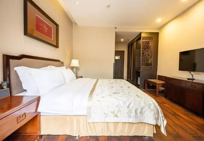 Rommene er elegant innredet i kinesisk stil med tremøbler og fine detaljer. De er alle utstyrt med moderne fasiliteter som aircondition, wifi, sikkerhetsboks, vannkoker til kaffe/te og flatskjerm-TV. Badene er moderne og nyrenoverte. Her finner du badekåpe, tøfler, hårføner og et utvalg toalettsaker.