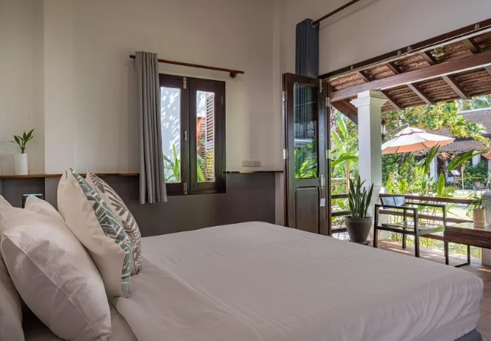 Du bor som standard på et superior-rom med utsikt mot hotellets lotusdam, der du kan sitte på terrassen og nyte synet av det stille vannet og de grønne omgivelsene. Rommene har en enkel og elegant innredning med tregulv, store vinduer og lyse farger som gir en fredelig stemning. Du har aircondition, minibar, TV og Wi-Fi, og badet er utstyrt med dusj og andre nødvendige fasiliteter.