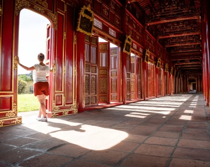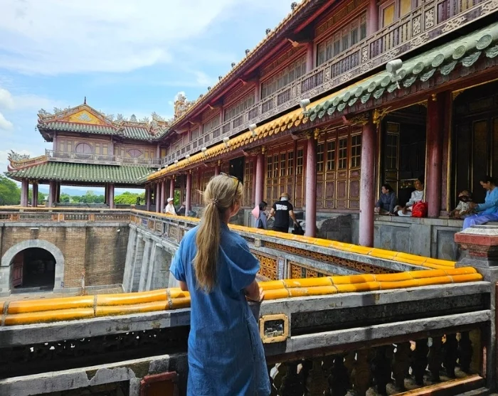 Du blir hentet på hotellet av din guide, og første stopp er den gamle keiserbyen – en imponerende festning bygget tidlig på 1800-tallet, da Nguyen-dynastiet gjorde Hué til hovedstad. Festningen er omkranset av vollgraver og massive murer, og rommer tidligere gemakker for både administrasjonen og keiserfamilien. Stedet er inspirert av Den forbudte by i Beijing, og selv om både Indokina-krigen og Vietnamkrigen etterlot betydelige ødeleggelser, står deler av palasset og de hellige hallene fortsatt som minner om en svunnen storhet. UNESCO har i dag satt i gang omfattende restaureringsprosjekter som gir nytt liv til det historiske komplekset.