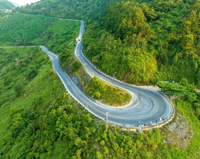 Ruten følger tidvis kysten og slynger seg opp gjennom Truong Son-fjellene, hvor du krysser det spektakulære Hai Van-passet, også kjent som “passet i skyene”. Herfra får du en utsikt som virkelig tar pusten fra deg, med frodige, grønne fjell på den ene siden og Sør-Kinahavets blå horisont på den andre.