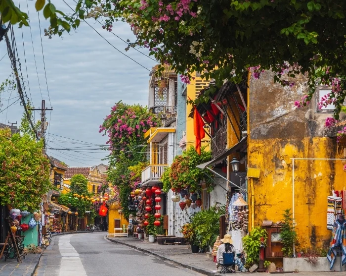Bort fra elva brer det seg en labyrint av små, stemningsfulle gater. Her blir du møtt av en fargerik blanding av japanske trehus, kinesiske forsamlingshus, franske kolonibygninger og de karakteristiske kjøpmannshusene. Fargesterke lanterner henger som girlandere over gatene og gir en helt spesiell stemning, spesielt når mørket senker seg. Butikker, gatekjøkken, kafeer og små restauranter ligger som perler på en snor og inviterer til avslappede øyeblikk og nysgjerrige oppdagelser.