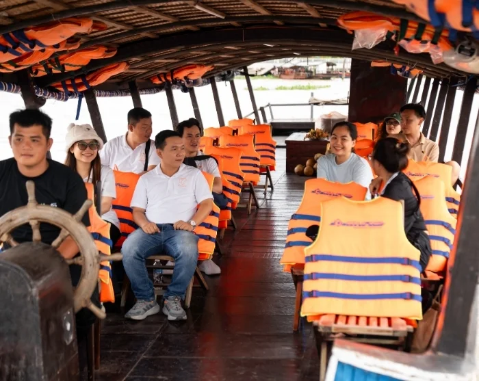 Etter omtrent 2,5 timers kjøring ankommer du byen Cai Be, en sjarmerende elveby i Mekongdeltaet som er kjent for sine frodige frukthager og autentiske landsbystemning. Her går du om bord i en båt og legger ut på deltaet. Du besøker lokale verksteder hvor dyktige kunsthåndverkere lager produkter av kokos. Deretter fortsetter du i en liten sampan – en tradisjonell, håndrodd trebåt – gjennom Mekongdeltaets smale, snirklete kanaler.