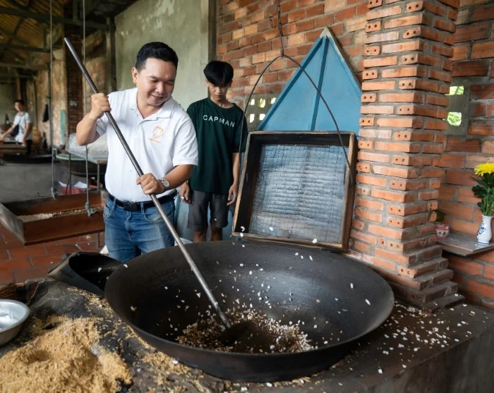 I dag får du et unikt innblikk i hverdagslivet og de levende håndverkstradisjonene i de små landsbyene i Tra Vinh. Tra Vinh er en fredelig og autentisk provinsby sør i Mekongdeltaet, preget av en stor khmerbefolkning. Fargerike pagoder, det avslappede tempoet og den spirituelle stemningen gir byen sitt unike preg og setter rammen for dagens opplevelser.