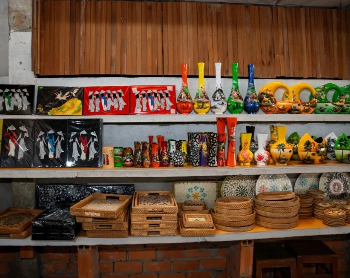 Deretter besøker du en liten, lokal utstilling med tradisjonelle vietnamesiske malerier. Her får du ikke bare mulighet til å beundre de fargerike verkene, men kan også prøve deg med penslene selv og oppleve den rolige fordypelsen som kjennetegner denne kunstformen.