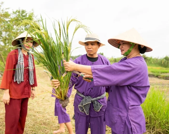 Du drar videre til vårt sosiale bærekraftsprosjekt i Vinh Long, som er startet av vår lokale samarbeidspartner. Her venter en rolig spasertur gjennom landsbyen, der guiden din underveis gir deg spennende innblikk i prosjektet. Du får også mulighet til å teste det tradisjonelle landbrukslivet. Sammen med lokale bønder får du prøve deg på risdyrking – enten ved å plante små risplanter eller hjelpe til med innhøstingen, avhengig av sesongen. Dette er en lærerik og jordnær opplevelse som gir deg et unikt innblikk i hverdagen på den vietnamesiske landsbygda, og i det arbeidet som ligger bak et bærekraftig jordbruk. Ved å delta bidrar du dessuten til å gjøre en forskjell for familiene i Vinh Long, da en prosentandel av reisens pris går direkte til prosjektet – som du kan lære mer om her.
