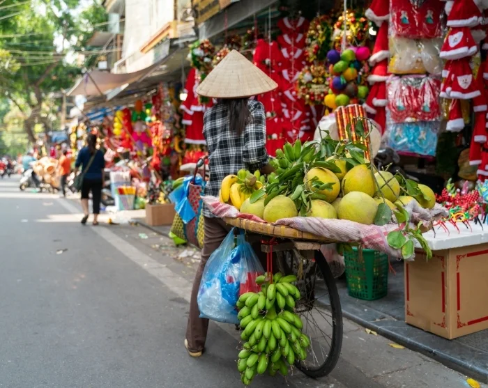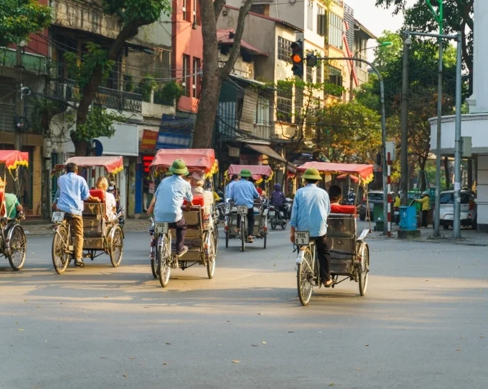 Videre går turen med tradisjonell sykkeltaxi – også kalt cyclo – gjennom det gamle kvarterets labyrint av smale gater og yrende handelsliv. Dette området er kjent for sine 36 gater, som opprinnelig har fått navnet sitt etter varene som ble solgt her: bambus, silke, papir og blikk. Mange av gatenavnene lever videre i dag, og atmosfæren er gjennomsyret av lokal sjarm. Her handler byens innbyggere fortsatt, de småprater og serverer rykende varm pho fra gatekjøkkenene.