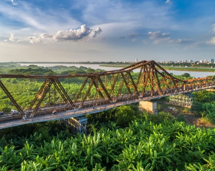 Etter en spennende cyclotur besøker du den historiske Long Bien-broen – et ikonisk landemerke fra den franske kolonitiden, bygget tidlig på 1900-tallet. Denne særegne jernbroen strekker seg over Den Røde Elven og ble kraftig skadet under Vietnamkrigen, men står i dag som et sterkt symbol på Hanois utholdenhet. Broen er forbeholdt tog, syklister og fotgjengere, og byr på en stemningsfull opplevelse. Her kan du møte lokale som sykler til jobb eller selger frukt langs skinnegangen, mens du nyter utsikten mot små, grønne elveøyer med åkrer midt i storbyen – et populært motiv for fotografer og reisende som ønsker å fange Hanois sjel.