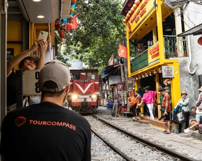 Du lander på Noi Bai, Hanois internasjonale flyplass, hvor du går gjennom passkontroll og henter bagasjen din. Din guide venter utenfor ankomsthallen ved utgangsdørene. Guiden har på seg TourCompass-uniform og holder et TourCompass-skilt, slik at du enkelt kan finne ham eller henne.