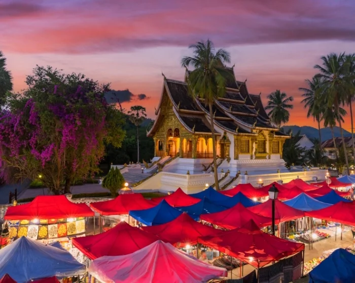 Reisen starter i den gamle kongebyen Luang Prabang i Laos. Byen er kjent for sin fredfulle atmosfære, gyldne templer og den eventyrlige panoramautsikten fra toppen av Phousi-fjellet. Du besøker også det kongelige palasset og kan ta et forfriskende bad i det vakre Kuang Si-fossefallet.