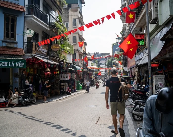 Turen fortsetter i en sykkeltaxi – også kjent som cyclo – gjennom det gamle kvarterets labyrint av smale gater og yrende handelsliv. Det gamle kvarteret er kjent for sine 36 gater, som opprinnelig fikk navn etter varene som ble solgt her: bambus, silke, papir og blikk. Mange av gatenavnene lever videre i dag, og atmosfæren er fylt av lokal sjarm, der innbyggerne fortsatt handler, småprater og serverer rykende varm pho fra gatekjøkkenene.