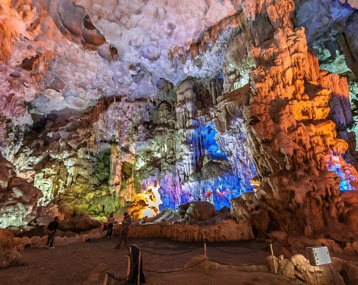 Turen fortsetter til Sung Sot-grotten, som er Ha Long-buktens største og mest imponerende dryppsteinsgrotte. Her blir du belønnet med et magisk indre landskap av stalaktitter og stalagmitter, formet gjennom millioner av år. Vi anbefaler gode, lukkede sko, spesielt i vått vær.