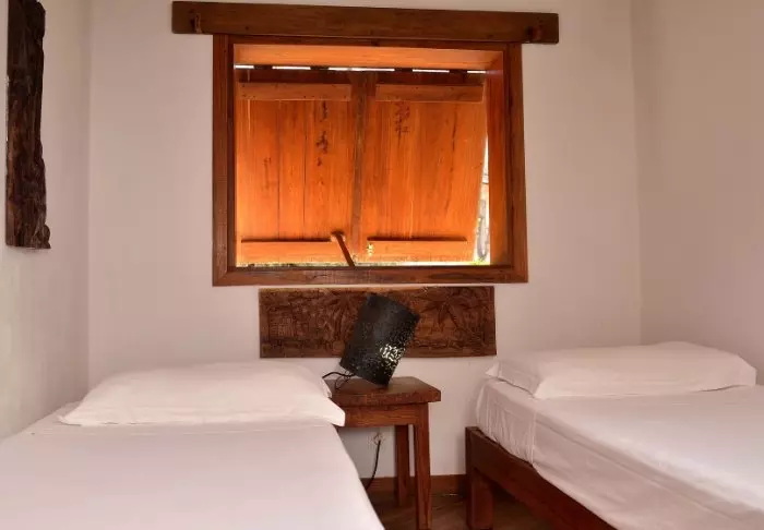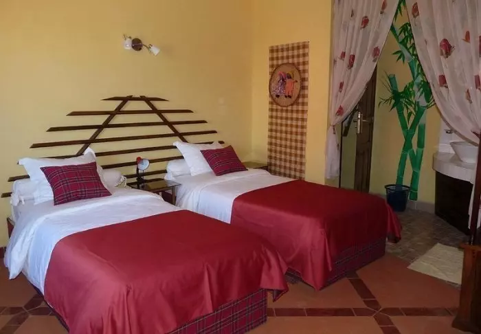 De 22 rommene er alle innredet i tradisjonell madagassisk stil – det vil si veldig enkelt, med tregulv og tremøbler – og ikke så mye annet. Hotellet er rent og pent, men du bør ikke forvente mye mer enn en seng å sove i, god mat og forhåpentligvis god underholdning.