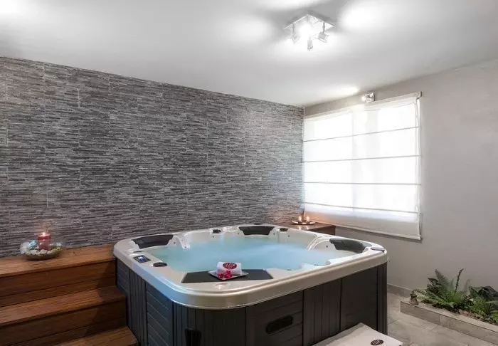 Hvis vi starter nederst, finner du et vakkert spaområde i hotellets kjeller med basseng, hamam, boblebad og behandlingsrom.