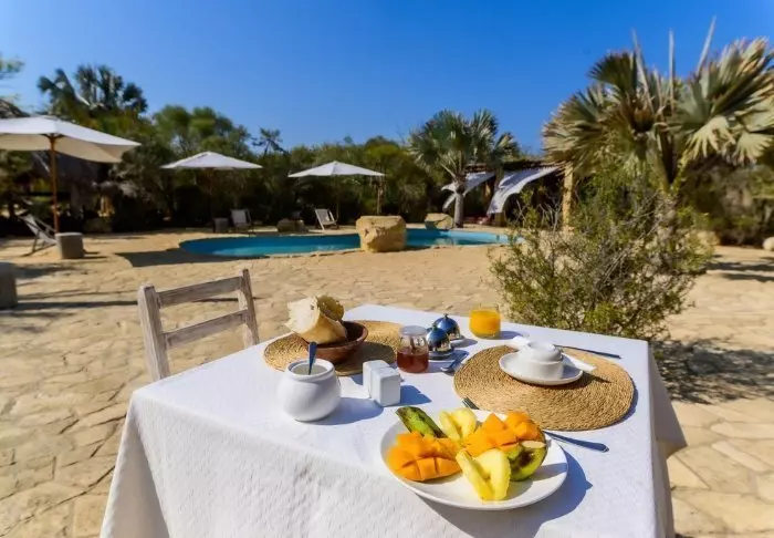 Hotellets restaurant byr på en spennende blanding av europeisk og madagaskisk kjøkken. Du kan spise ute på terrassen, der solen varmer på dagtid, eller nyte en drink under stjernehimmelen om kvelden. Frokosten er en opplevelse i seg selv – med fersk frukt, hjemmebakst, varme retter og nybrygget kaffe.