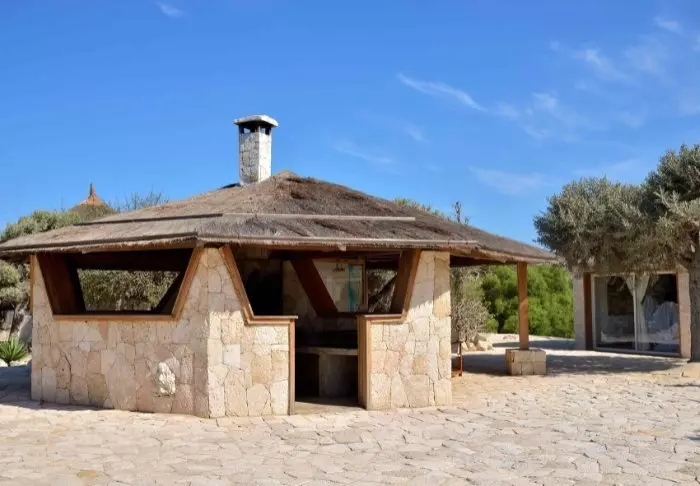 Fra utsiden ser lodgen ut som noe du forventer å finne i Barcelona. Gaudís myke, organiske former har tydelig inspirert arkitekten.