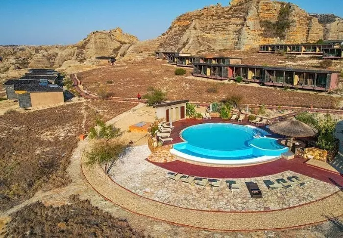 Moderne og stilige Isalo Rock Lodge er et av de mest luksuriøse overnattingsstedene i Isalo nasjonalpark.