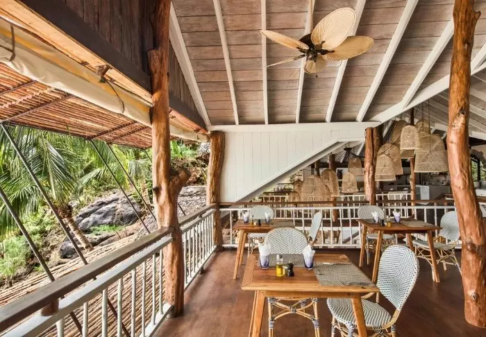 Restauranten serverer deilige retter med blant annet ferskfanget fisk og lokale råvarer, og frokosten kan nytes i skyggen på terrassen. Baren ligger rett ved bassenget og er det naturlige stedet å avslutte dagen mens solen synker i havet.