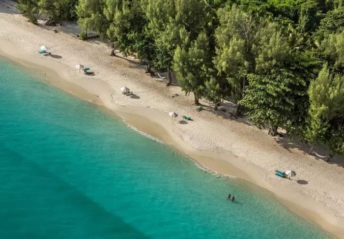 På begge sider ligger den hvite stranden øde. Bak deg ligger lodgen. Det er den eneste lodgen på mange kilometer. Her er det ingen folksomme gater, suvenirbutikker med røverkjøp eller musikk fra de omkringliggende restaurantene. Alt du hører, er lyden av havet og vinden – og lyden av alle som jobber på kjøkkenet med å tilberede lunsjen.