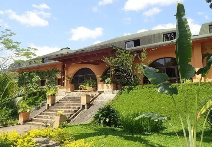 Hotellet ligger på en bakketopp, og det er flott utsikt over nasjonalparken fra loungen og restauranten. Rommene ligger bak selve hovedbygningen, og du kommer deg dit ved å gå langs stiene gjennom den frodige hagen.