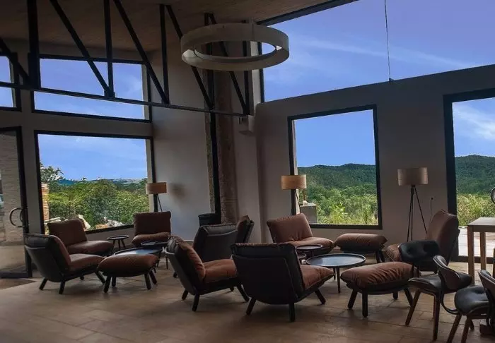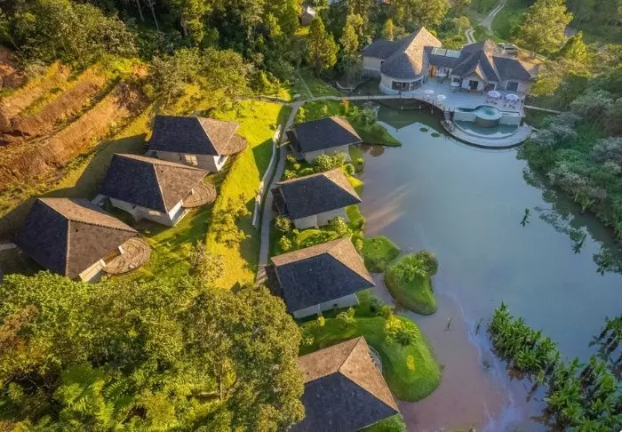De 23 rommene er store og innredet med respekt for naturen rundt. Det er tregulv og dempede farger, og fra dusjen har du utsikt over skogen rundt deg. Badene er også fylt opp med miljøvennlig såpe og sjampo, og alt overskuddsvann samles og filtreres før det gjenbrukes for å vanne blomsterhagen utenfor.
